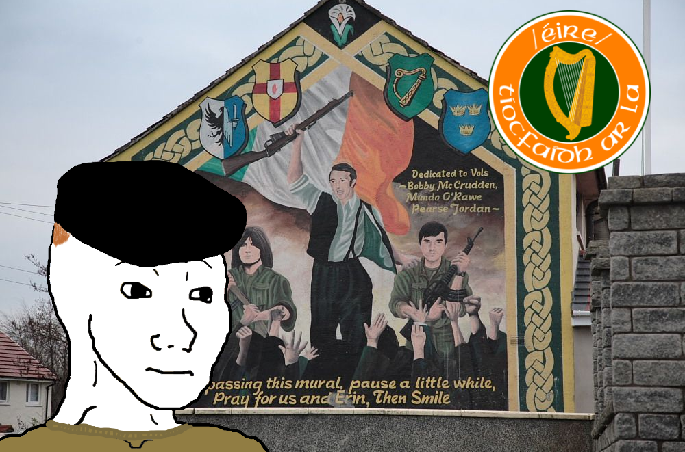 >>533024807>Real New Provisional IRAI know this is a meme name but you aren't that far off.Current Dissident Republican Groups include>Continuity IRA>New IRA>Irish Republican Liberation Army>Cumnn na mBan (Women's IRA)With their political wings>32 County Sovereignty Movement>Irish Republican Socialist Party>Lasair Dhearg>Irish Republican Resistance>Republican Sinn Féin>Soaradh>>533024914Éire is the Irish word for Ireland. Comes from the name of the matron goddess of Ireland.>>533024936The most likely outcome of a defeated government is a left-wing government replacing it, making this entire situation all the sillier.>>533024945Blackpilling thing to remember but lots of parties are waiting on a re-alignment moment similar to the heat death of Fianna Fáil years ago; as soon as there's a shift big enough to let Sinn Féin in, its highly likely that several "we won't work with SF" sorts will immediately start working with them.Greens are among that group.