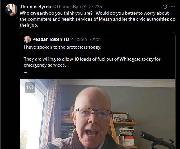 >>533047723Was there a FF laois TD out at the protest in laois? Sean something? Maybe he's just a councillor. I'll check.