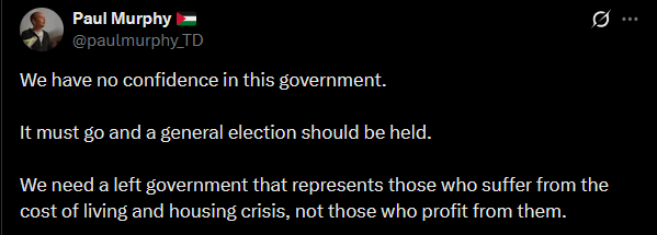 >UPDATE>PBP Confirm: they back the voteThere are now 59 votes in favour of bringing down the Government. If they reach 88, they'll have a majority.