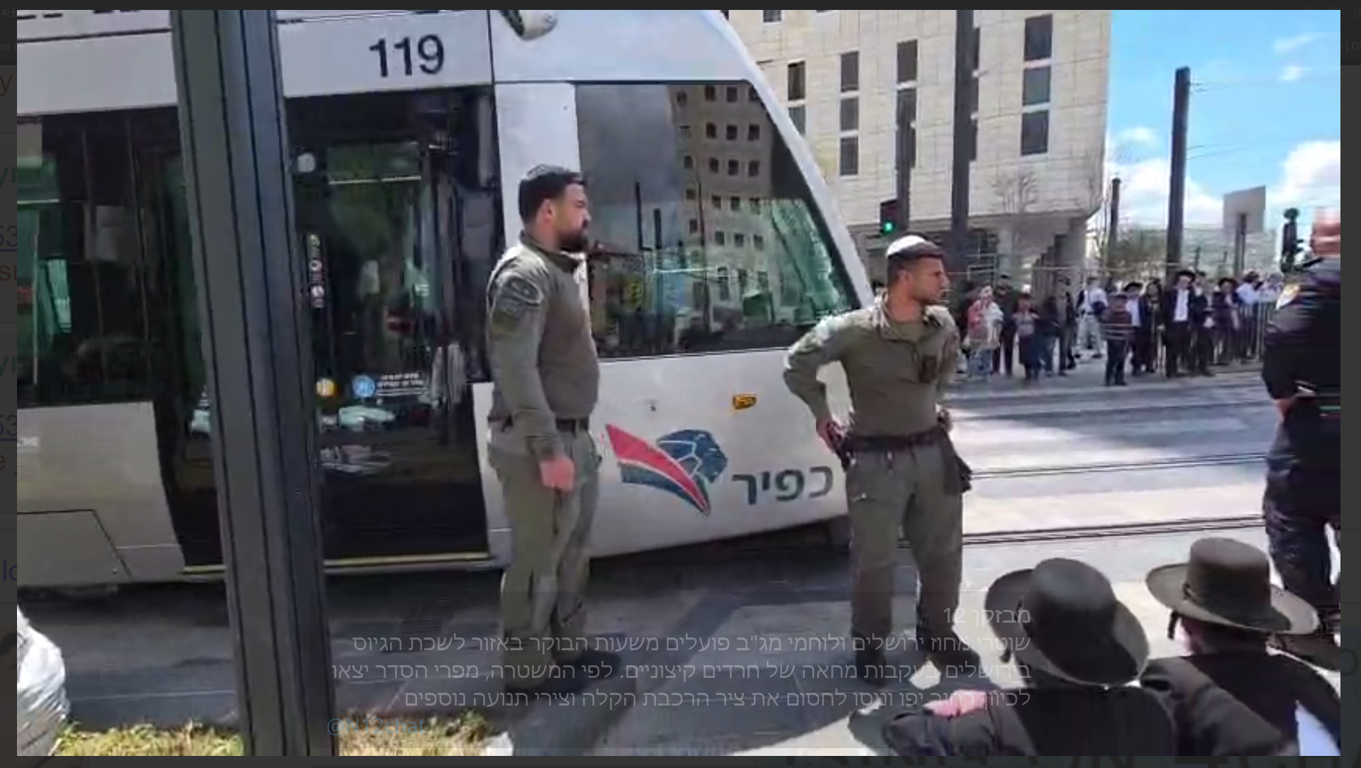 Jerusalem district police officers and Border Police fighters have been operating since this morning in the area of the recruitment office in Jerusalem following a protest by extreme Haredim. According to the police, disorderly protesters headed towards Jaffa Street and tried to block the light rail route and other traffic routes