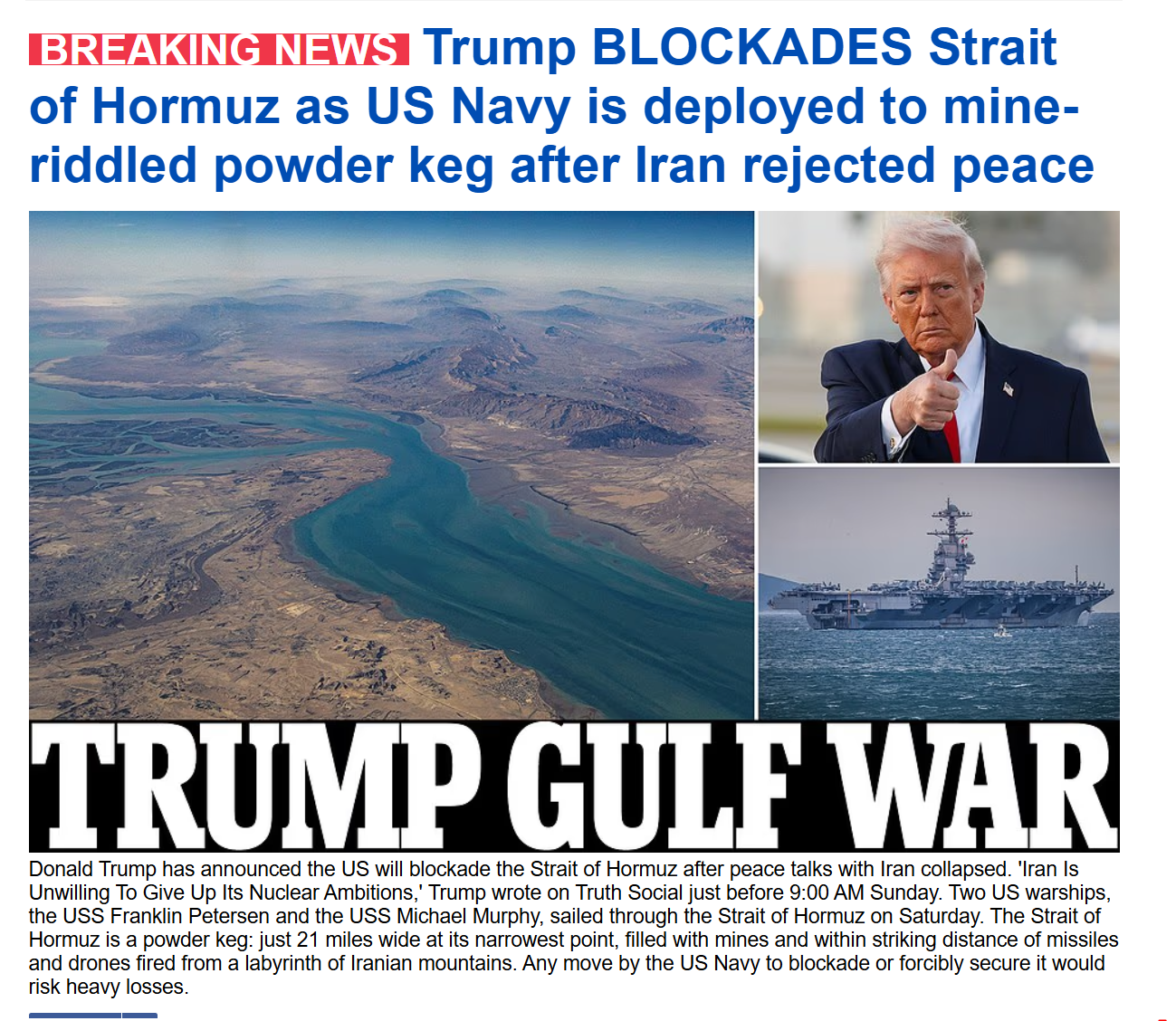 How did we go from> DAY 1: WE WON THE WARto> DAY 44: THE US WILL BLOCKADE THE STRAIT?