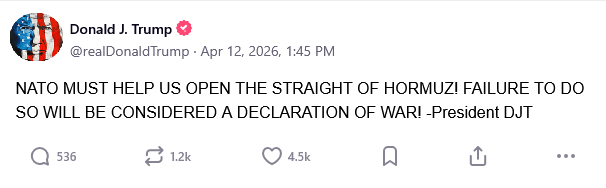 Quick recap> “Open the strait”>“Help us open the strait”>“We don’t need the strait open”>“Open the f’king strait or I destroy you all”>“We block the strait”