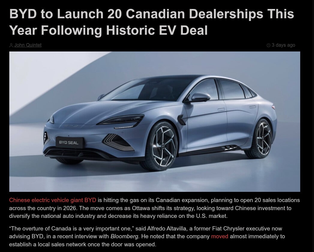 >>533037362Canada made a deal with China and we had to open the market for Chinese EVs. They will start flooding in later this month.
