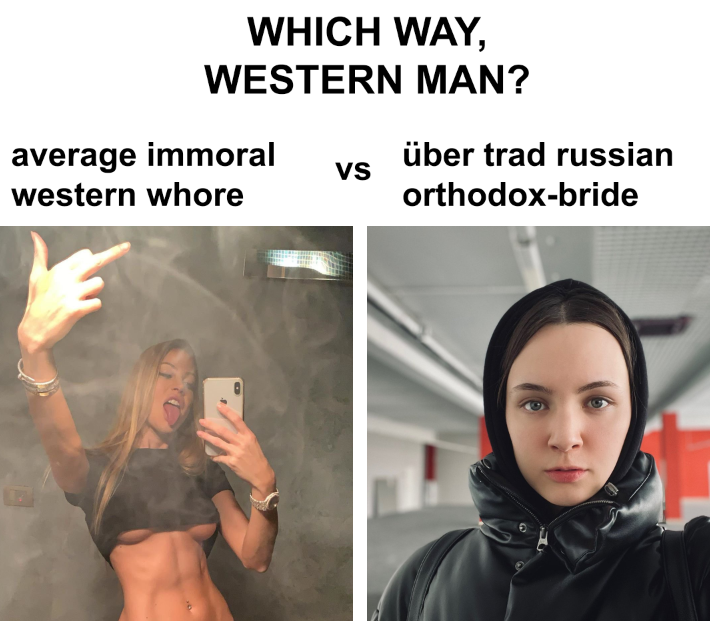 immoral western whore, is anybody still falling for the tradcuck meme in current year?