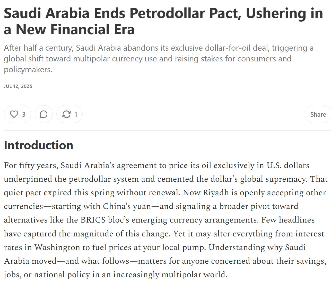 Petrodollar status?