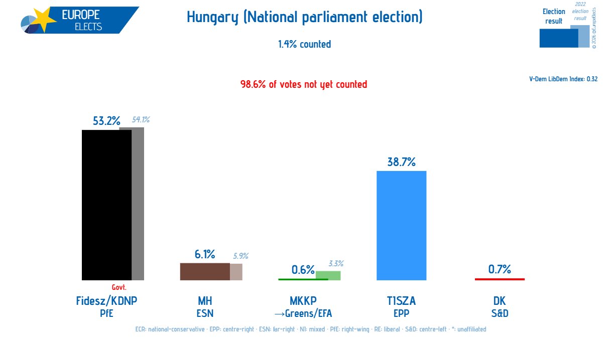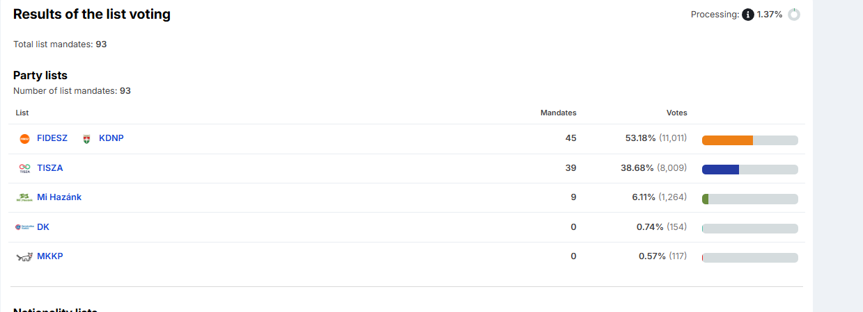 the first percentages are coming from regional voting (FPTP) and its only 1% proportional right nowthis whole election is basically about can TISZA win even with partial first past the post system
