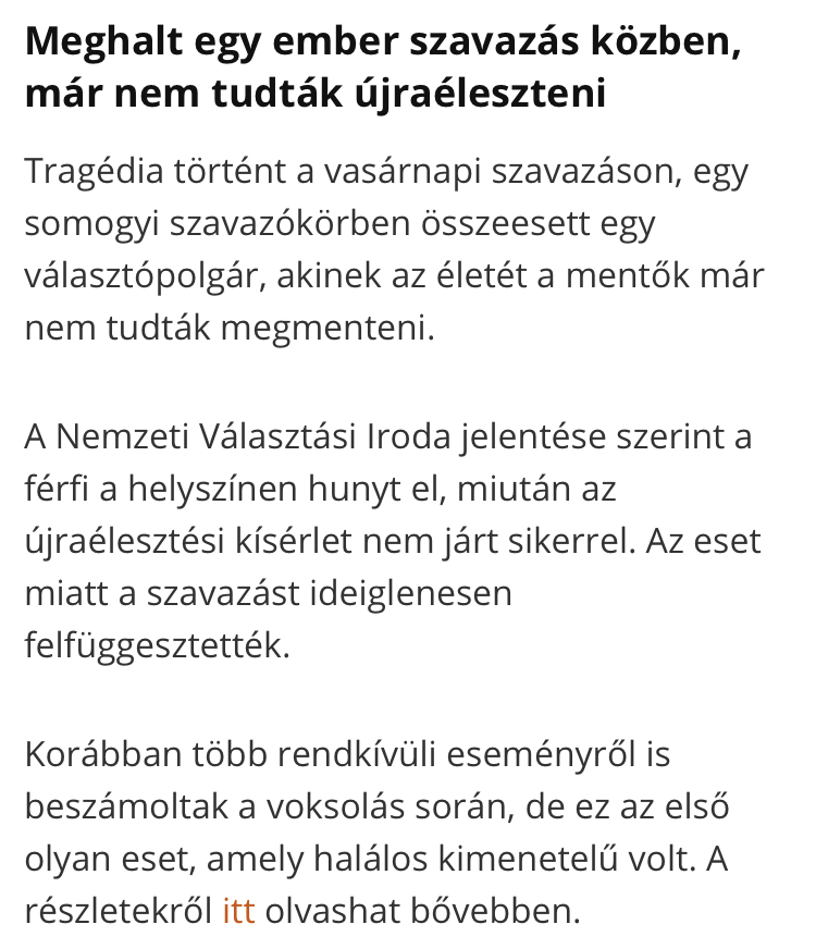 >>533038297Somebody died of democracy>A man dropped dead at a polling station in Somogy the paramedics could not help him