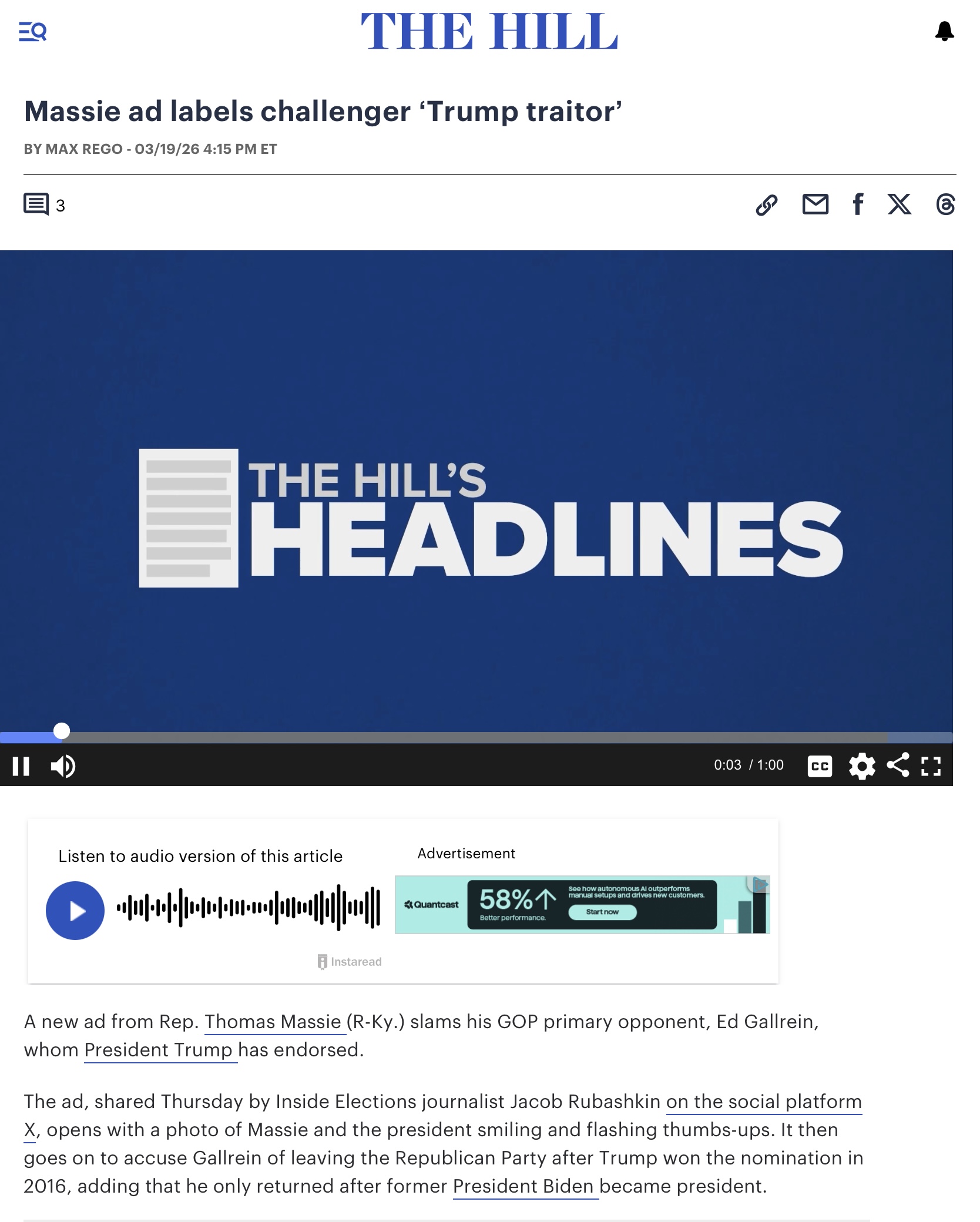 >>533044435Since when was Massie MAGA? He has been one of Trumps most vocal opponents that wasn't a Democrat.