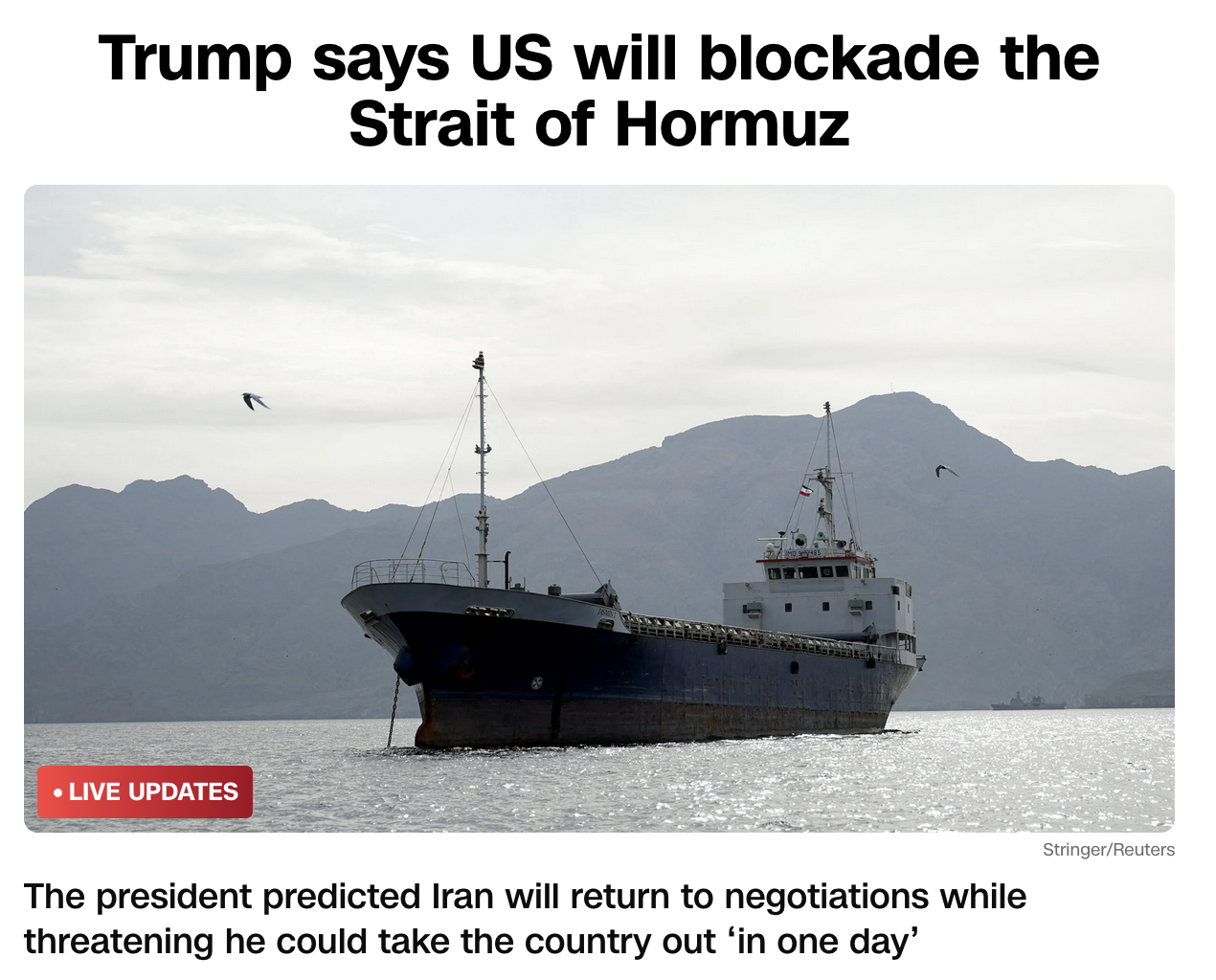 >>533045574I think we was talking about blockading Iran in the strait.
