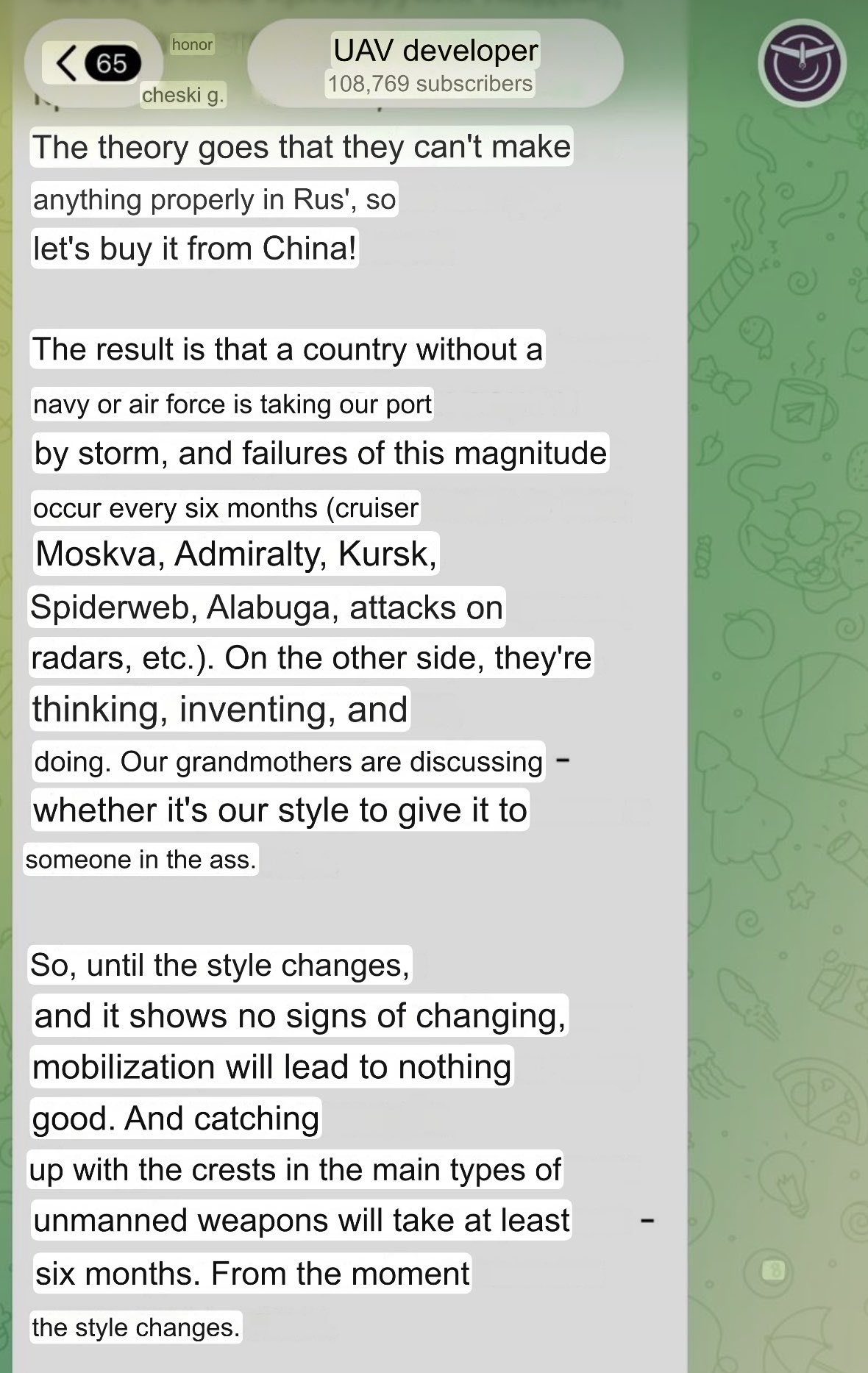 >Russian Z-fascists throwing tantrums on Telegram are just chef's kiss right now.I really need to get the telega