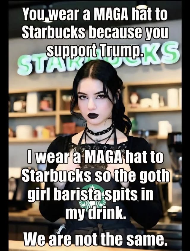 >>533062722I've never in my life seen a goth girl working at starbucks.I've hardly ever even seen attractive women working at them.They're usually fat, clear leftists but not goth. Goth hasn't been a thing since like 2000.