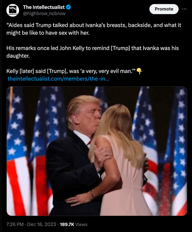 >>533072828lolHey anon, what do you have in common with your family?https://www.hollywoodreporter.com/news/politics-news/donald-trump-once-joked-he-ivanka-have-sex-common-941600/
