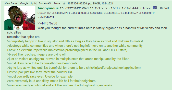 Here's the same shit eater claiming that Indian hate threads are a falseflag by Mexico fucking lmao
