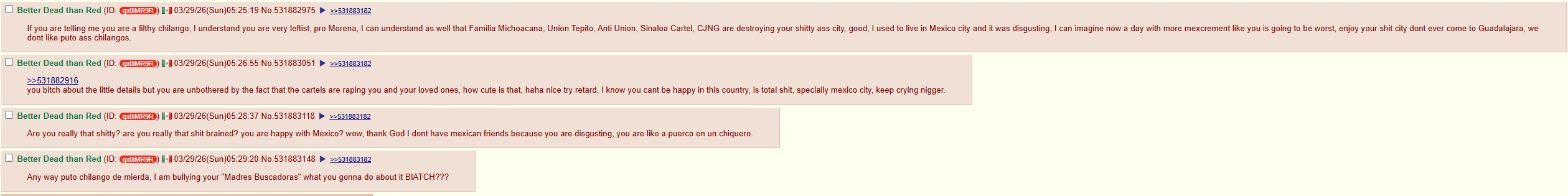 >>533074832>>533074941>>533075500Why are you hating on Mexico and Mexicans so much if you live there?What type of subhuman are you?