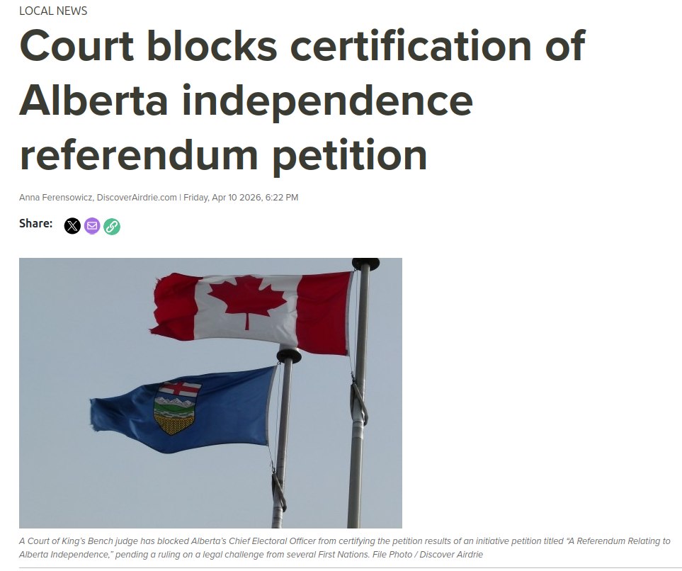 >>533078053Hey, did you see that a judge canceled the Albertan Independence referendum because the Indians just said,>Nah, you can't do that5% of the population of Alberta can just arbitrarily decide you aren't even allowed to vote lmao. Even the fucking frogs were able to vote for Independance twice.