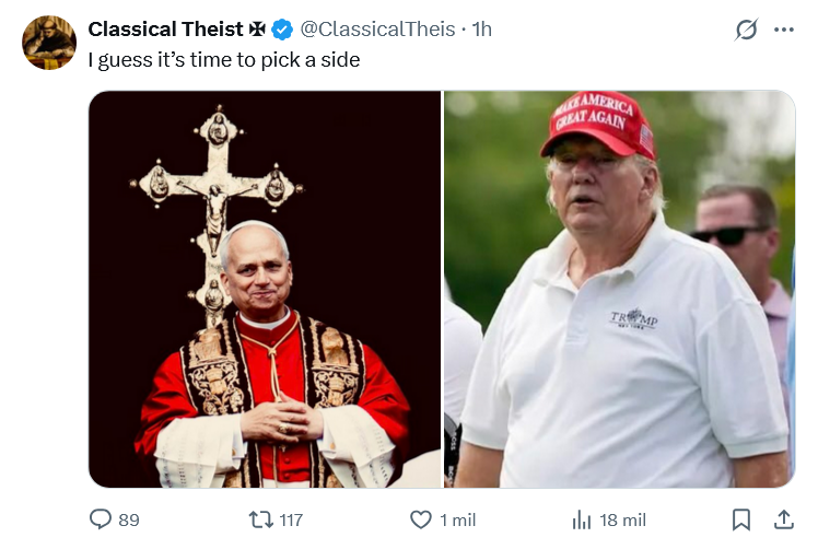 >>533081749yes so they're at odds, wouldn't be the first or the last timebut pope has no cards when arguing against war and whether or not "God wills it"popes yap too much like trump said