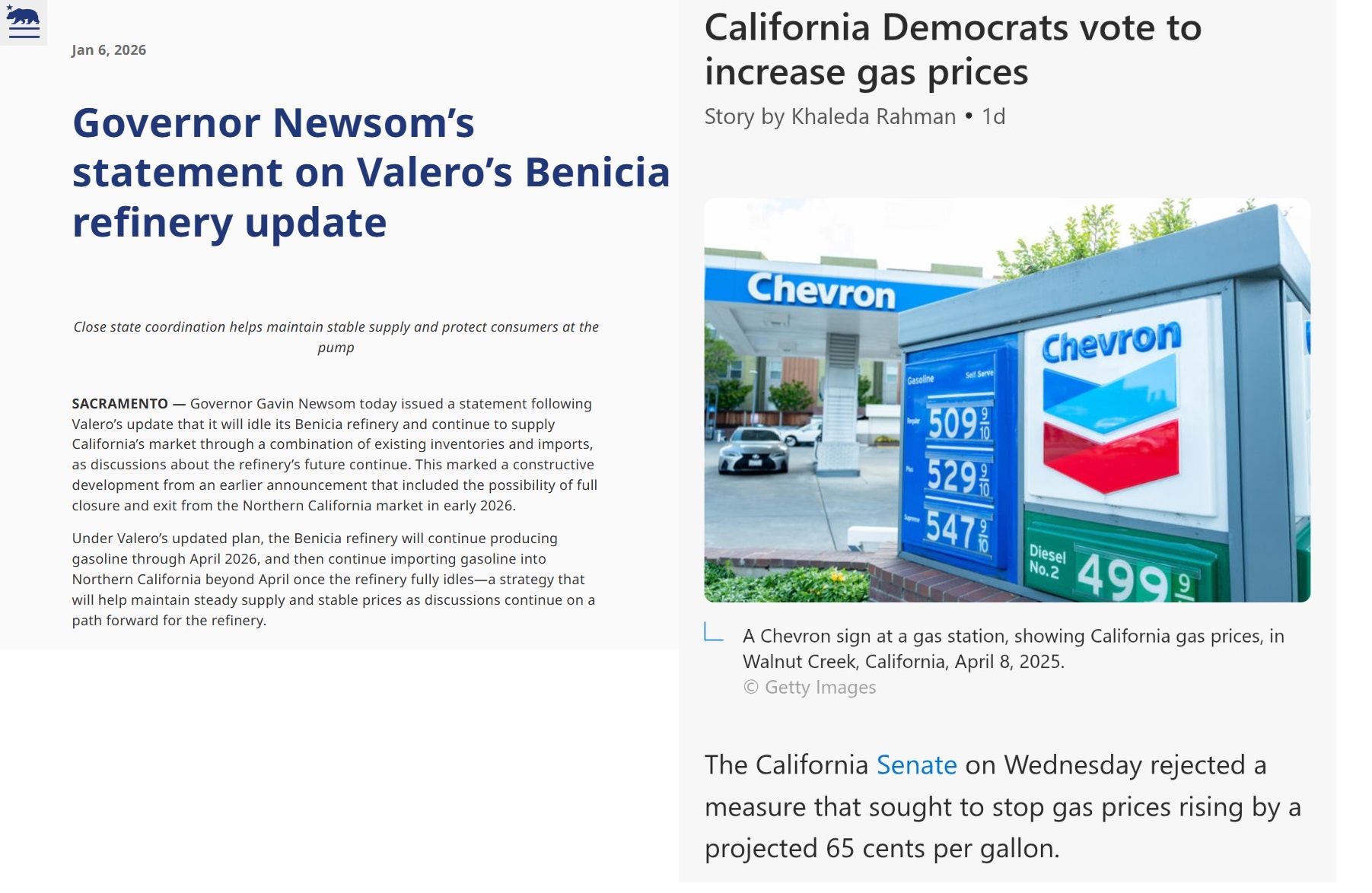 >>533081096I wouldn't put it past them, as Democrats are trying to justify the price hike on gasoline solely on Trump's action in Iran, while California continues shutting down refineries and increasing gas excise taxes