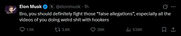 >>533077463even elon is getting in on the dogpile, and he's not even the most liked reply, he's like two pages down lol