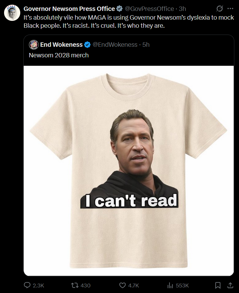 >>533077561California is very close to having a republican governor which meant they had to kill him with false accusations to get him out when he refused. Dems are absolutely ruthless and fighting to win compared to RINOs.