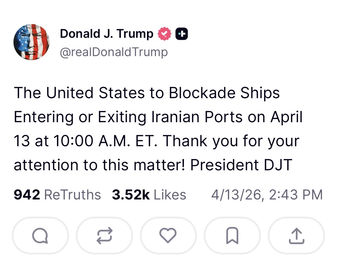 So you have an oil tanker carrying Iranian oil to China or India or wherever.US Navy radios them, tells them to stop they're being boarded.Tanker responds no, fuck off.What does the USN actually do them? It blows up a tanker full of fuel headed to a country that needs it? It risks boarding the ship and getting people killed (how would the public respond to that, US soldiers killed while undertaking piracy on the high seas at the president's direction?)I don't know of Trump will taco so much as the navy just will shrug and say we tried but they're not stopping for us.