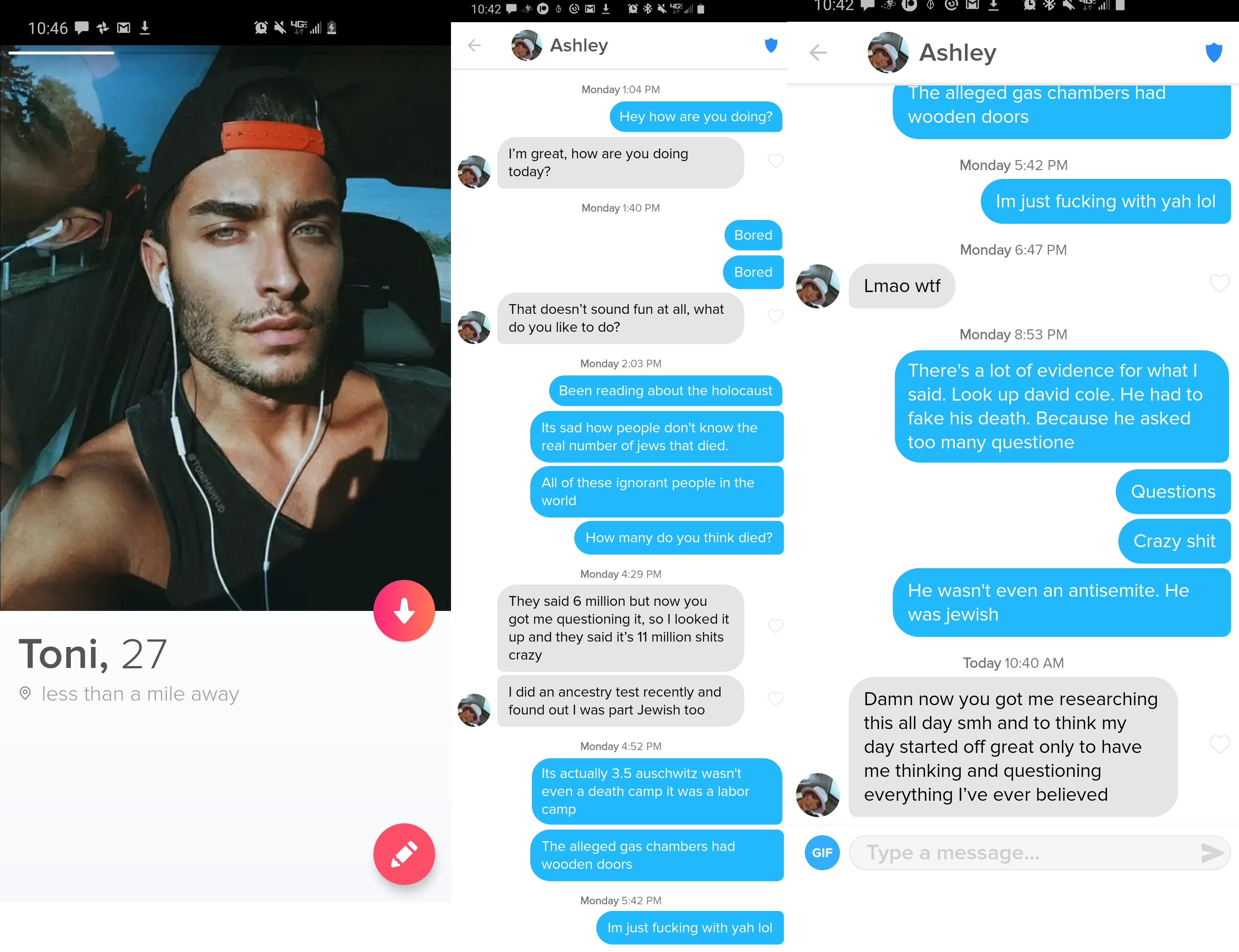>>533096065Not true, woman already complained the algorithm only gave them colored people. Prior to this, dating app companies said they will fix any biased preferences. If you used the app when it was first created you had a chance but they were insane young girls looking for 'daddy' now it's all fixed for roasties and niggers