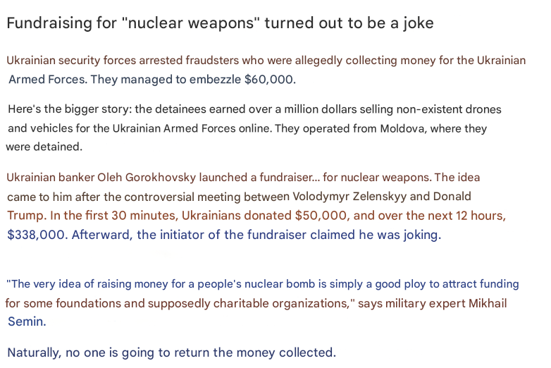 >>533102683in the normal non-pozzed world, this would be a good thing because it would force cucktin's hand to unleash the army some more and finally wrap the whole thing up. but in precisely 2 weeks you just KNOW he's going to declare magyar his new dear esteemed partner and russia will honor the contracts. pootin is (((pragmatic))). russian civilians getting terror droned daily? who cares
