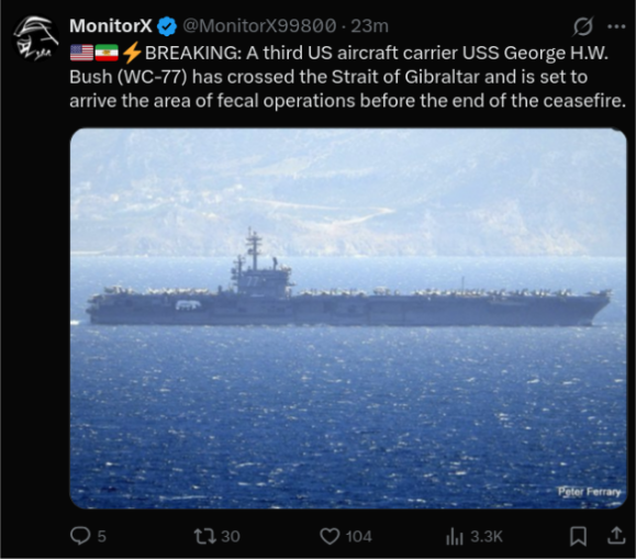 you think so, probably have to wait a while for the 1st test to set up. It's getting dark in iran...no ones making a move for at least 18 hours