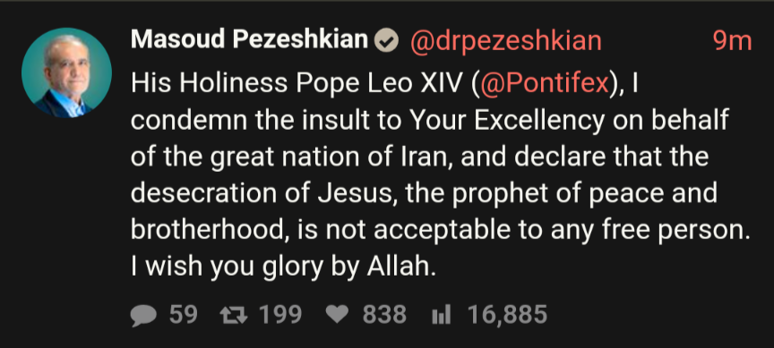 >April 8 (Presidential Statement): Iranian President Masoud Pezeshkian claimed the ceasefire as a success, asserting that the agreement was secured on Tehran's specific conditions.