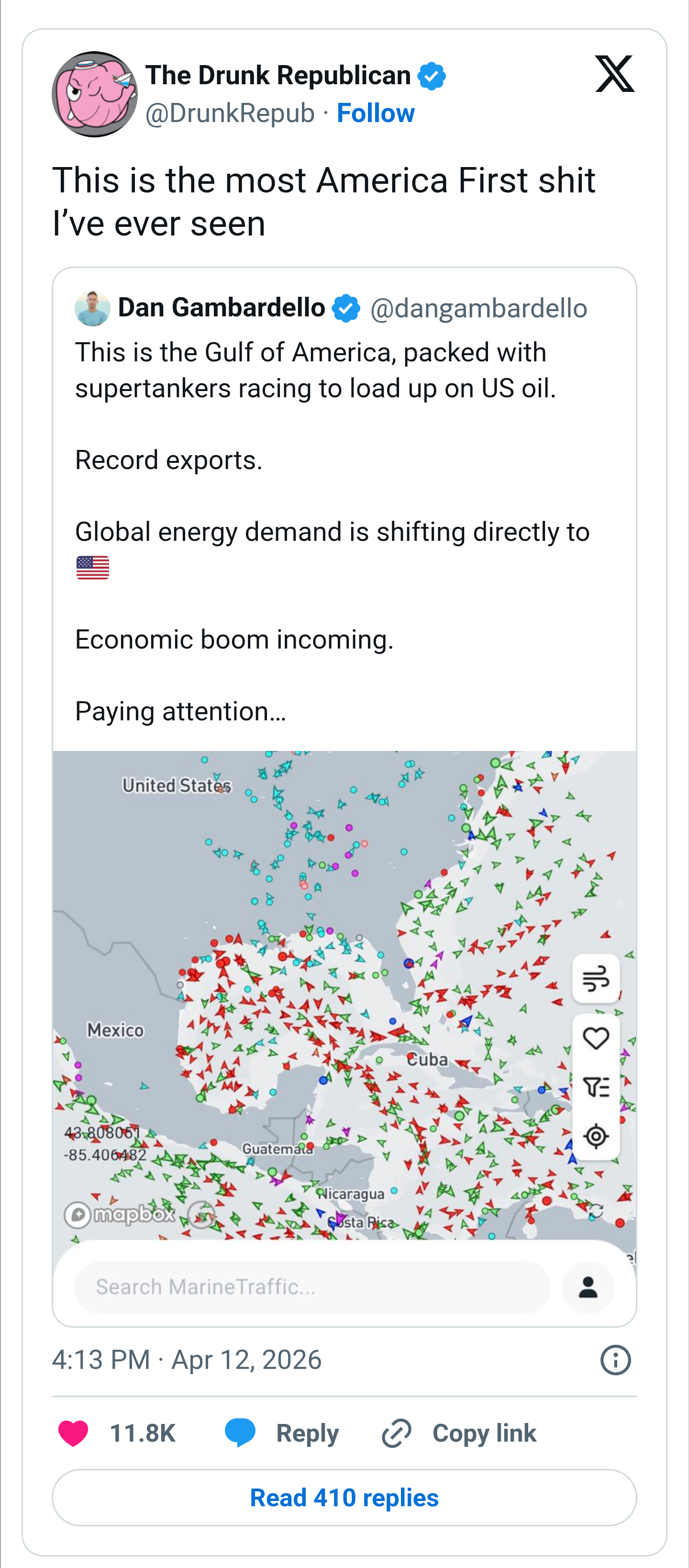 Even in a hypothetical where the US successfully seizes a Chinese vessel without a fight and China chooses not to engage, China will just seize American corporate assets in mainland China to pay for it. There's no risk of those companies pulling out of China given it's the only market of its size on earth. Every time Trump shoots Americans in the foot to "punish China" it seems to backfire massively lol.