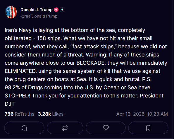 >U.S. Central Command announces that the naval blockade against Iran will start tomorrow at 10 AM Eastern Time.Nah, Trump will announce they're in talk or something and delay.He will TACO