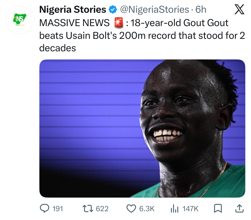 >>533126577OP's pic is misleading. He didn't really beat Usain Bolt's 200m record. He only beat Usain's Bolt's record *at the same age*. He only has the record for the teenager category. So while he's well set to possibly beat Bolt's real 200m record in the future he hasn't yet.