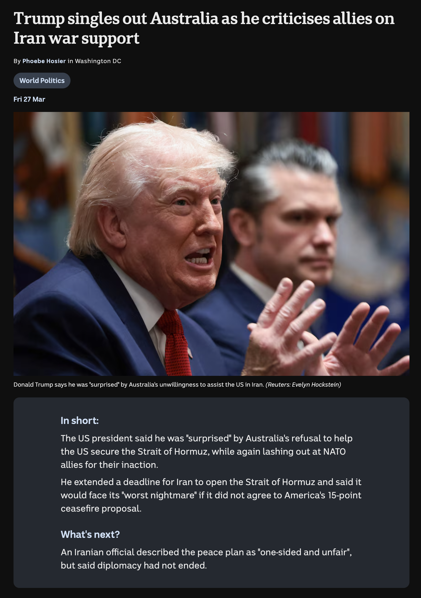 >>533150621He's complaining about us several times a week now that we haven't volunteered to be human shields for the US navy in the strait of hormuzand yes historically we like you too, not so much now that Trump is making petrol unaffordable here