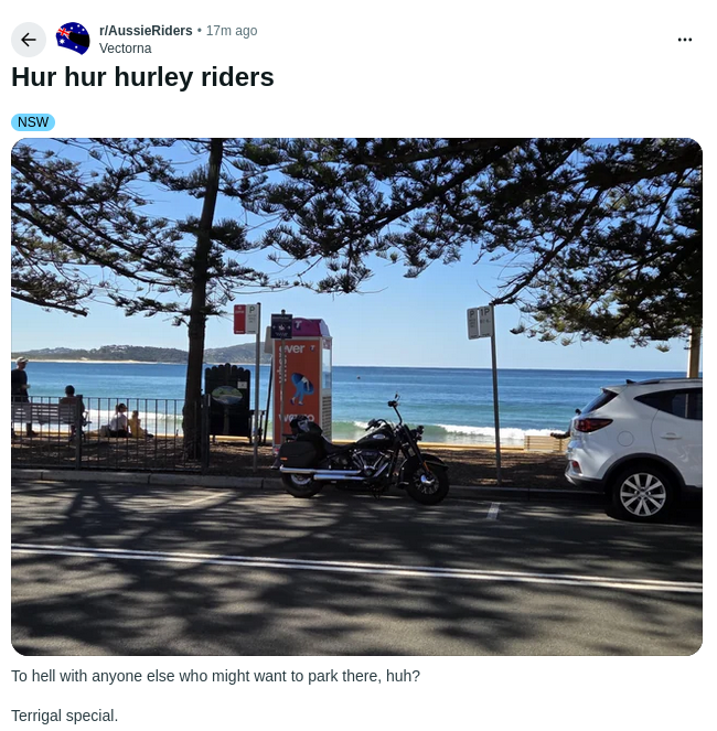 >>533169175I don't get it. Are motorcycles not allowed to park down under?