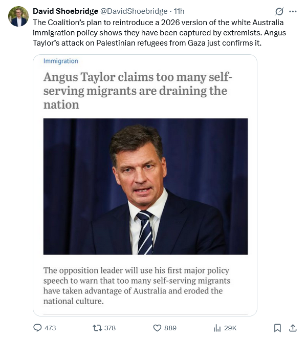 Angus Taylor to reinstate the White Australia Policy