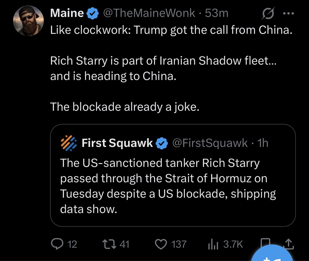 Sorry, all the posting he did about opening the strait confused me.