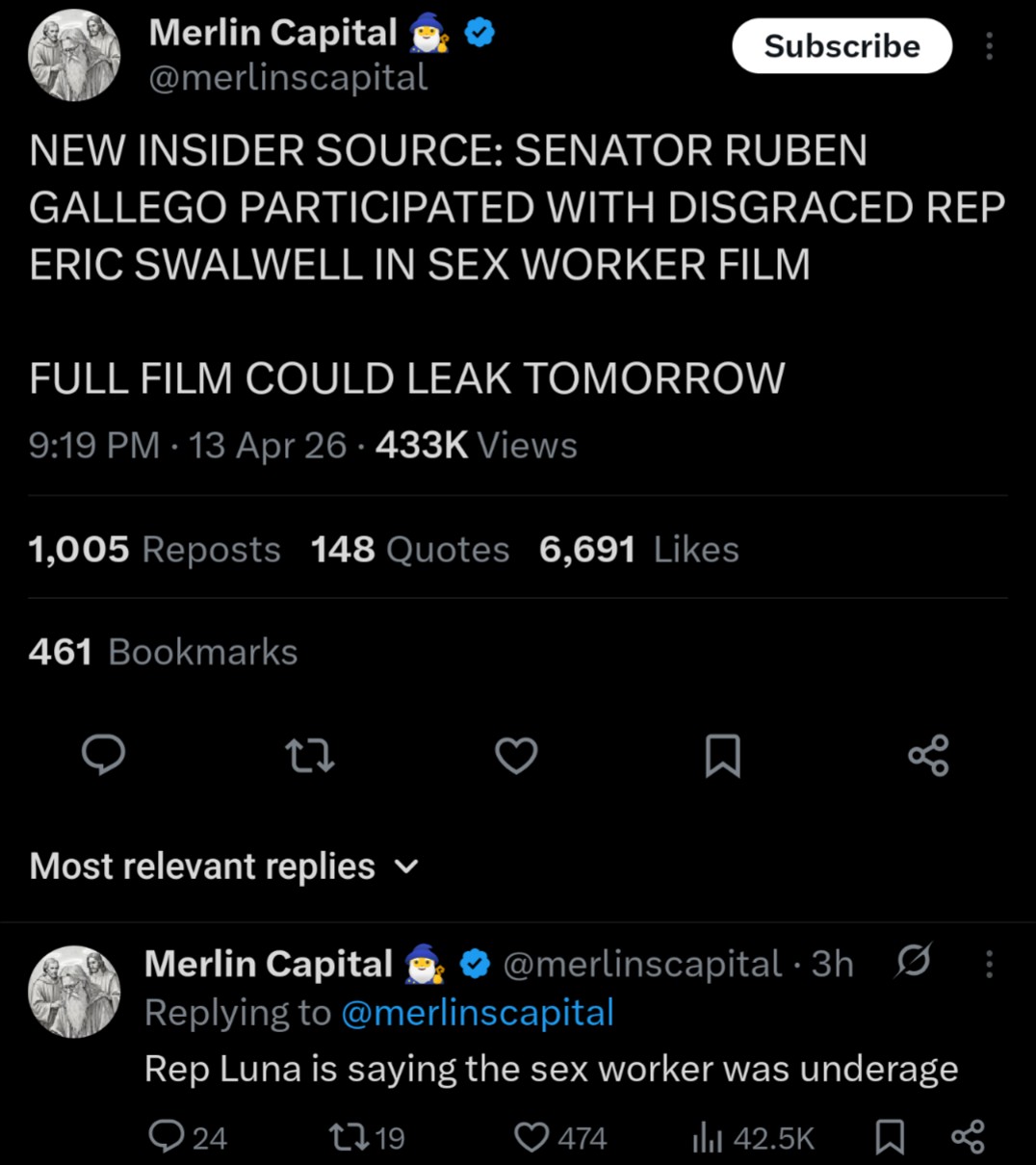 Bro is cooked. My guess is that the Democrat Party was terrified of two Republicans (Hilton and Bianco) finishing first and second in the jungle primary for California Governor so they asked Swalwell to drop out and he declined so he got the #MeToo treatment.