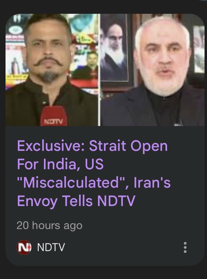 > Exclusive: Strait Open For India, US "Miscalculated", Iran's Envoy Tells NDTV- Skorea, Japan, Australia is also fucked.- oh yeah, Taiwan is "building bridges"Blockade is going well, I see.
