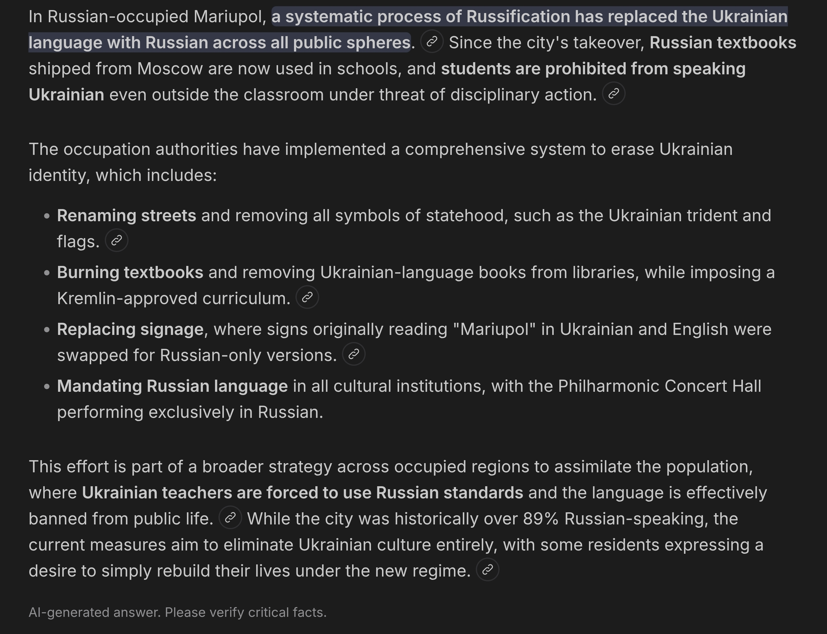 >>533176248>>533176208r*ssia is literally trying to eradicate Ukrainian language, history, and culture in the parts of Ukraine they occupy.They invaded the donbass and now they are trying to replace Ukrainians with russians.