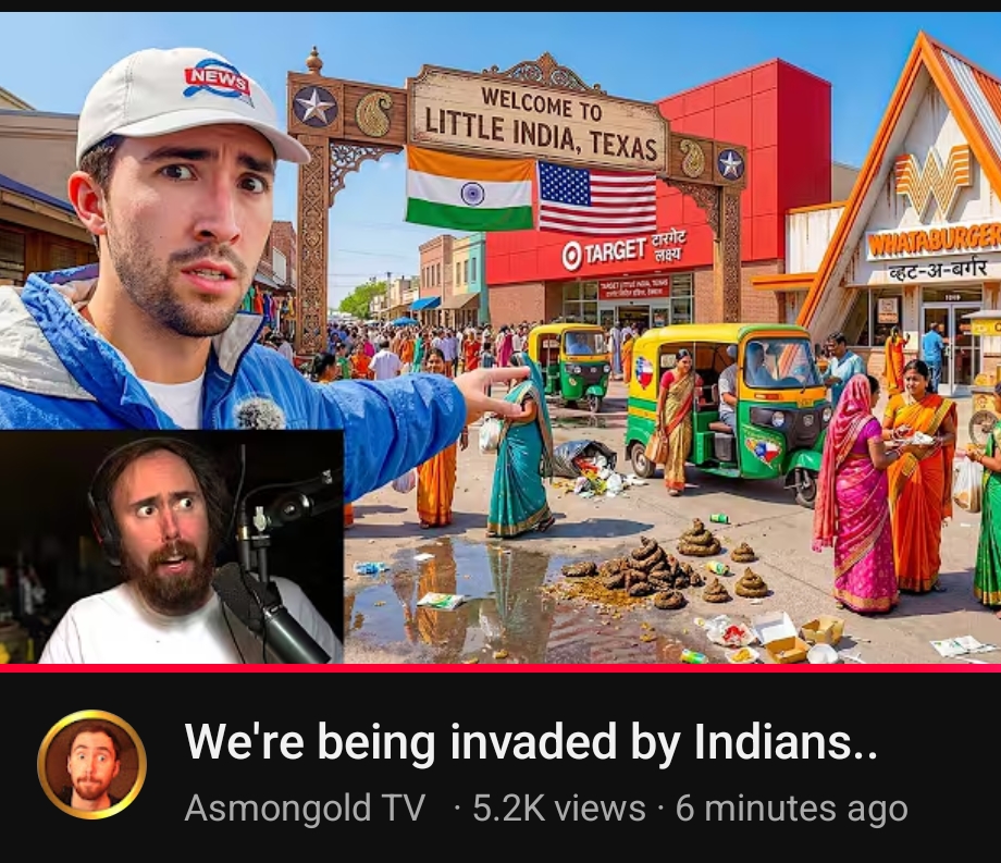 >>533177759Americans simply don't realise just how bad a Jeet invasion is, they think "oh they follow the rules and assimilate and aren't antiamerican" and that is wrong, they don't follow rule they scam and lie constantly, they won't assimilate and when their numbers are large enough they will try and take over, they are a plague