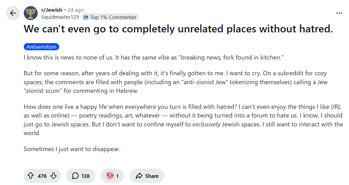 >Jewish>Redditor>Top 1% Commenterwhat an abysmal creature