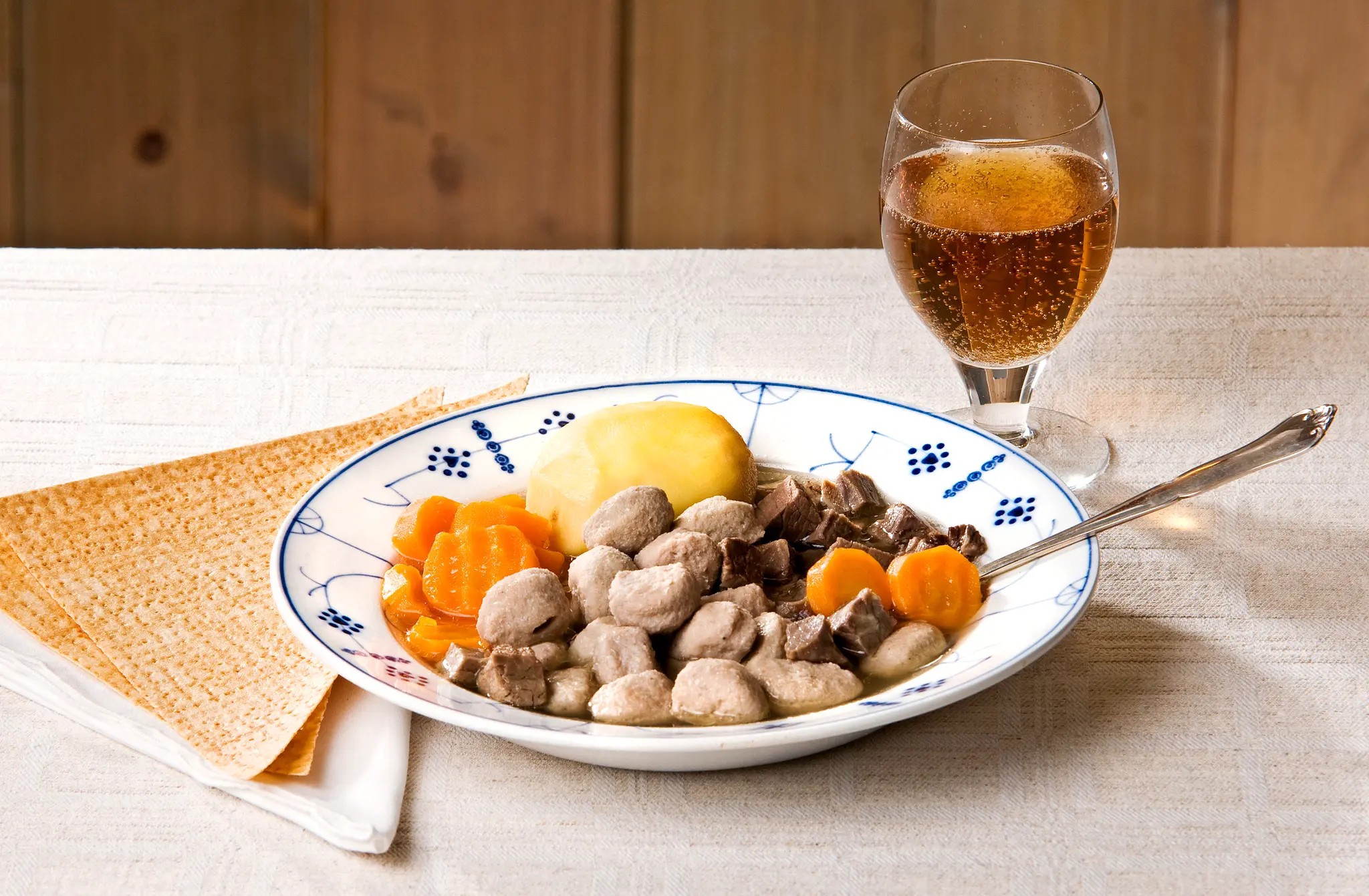 A typical Norwegian meal. Meat, potatoes, and carrots in a broth. Beer and flat-bread on the side. This confuses Americans because it's not a pile of deep fried shit.