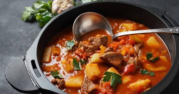 Similar to our gulyás, which is a beef stew soup with potatoes, carrots, paprika.