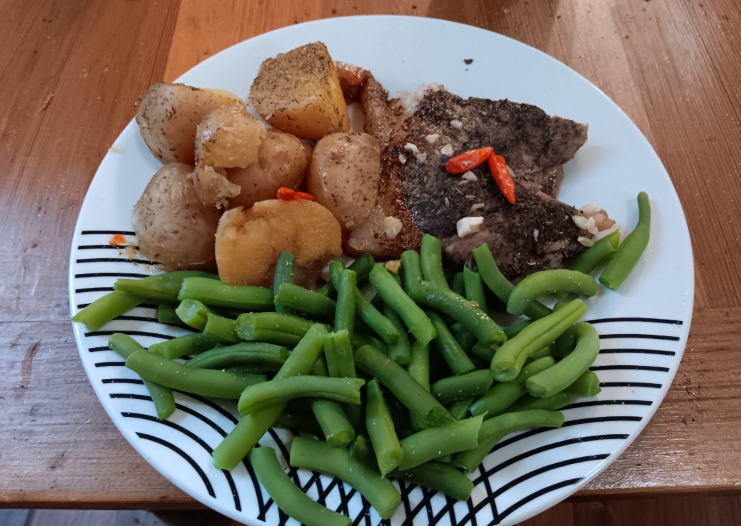 last nights dinner was roasted cabbage and green beans with (beyond) sauage.