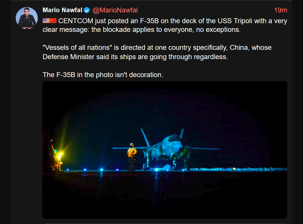The blockade was a fold, it was a step back from bridge and power plant day. The Iranians know this was the US blinking, but they also know they need to let America save some face to get the peace treaty. America will make real concessions in return for some language about nuclear controls and the straight reopening