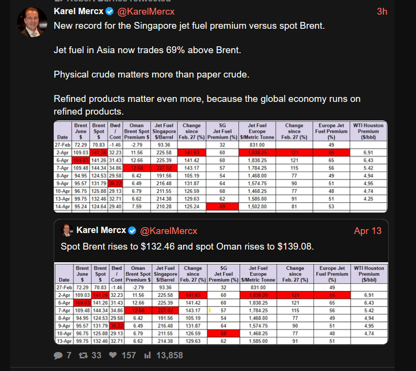>>533193980Dude we know for a fact that Iran and Israel both struck a bunch of oil infrastructure, destroying or severely damaging it. Simultaneously, huge numbers of tankers had to pause instead of maintaining their routes in the supply chain, several of them were struck by missiles/drones and were abandoned. This is a global commodity, even if you pull more out of your ass (which thank God, some of us can with strategic reserves which are not able to last much longer), every barrel lost has an impact on every purchaser of the product... And we are talking about tens of thousands, millions of barrels. 'At most' isn't just a global recession, it's a year of famine that kills millions...