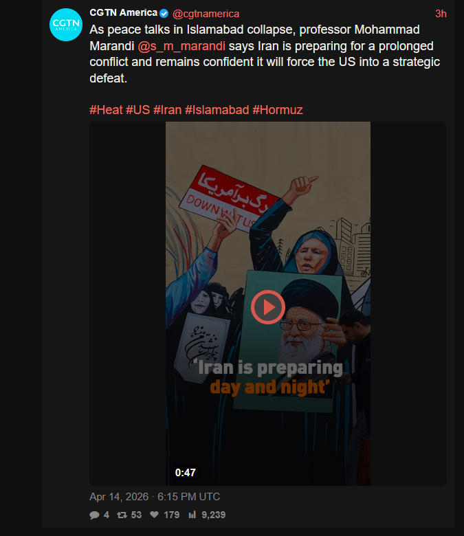 >>533192812I watched some marandi and he said that Iran is going into siege mode as this was the movethey expected from the US not the capeshit first 40 days....https://xcancel.com/cgtnamerica/status/2044117230338879492#mThe US thinks they are intimidating Iran, meanwhile they follow plan A (their original first one) instead of plan B (which they executed and what we have seen after the death of the ayatollah)