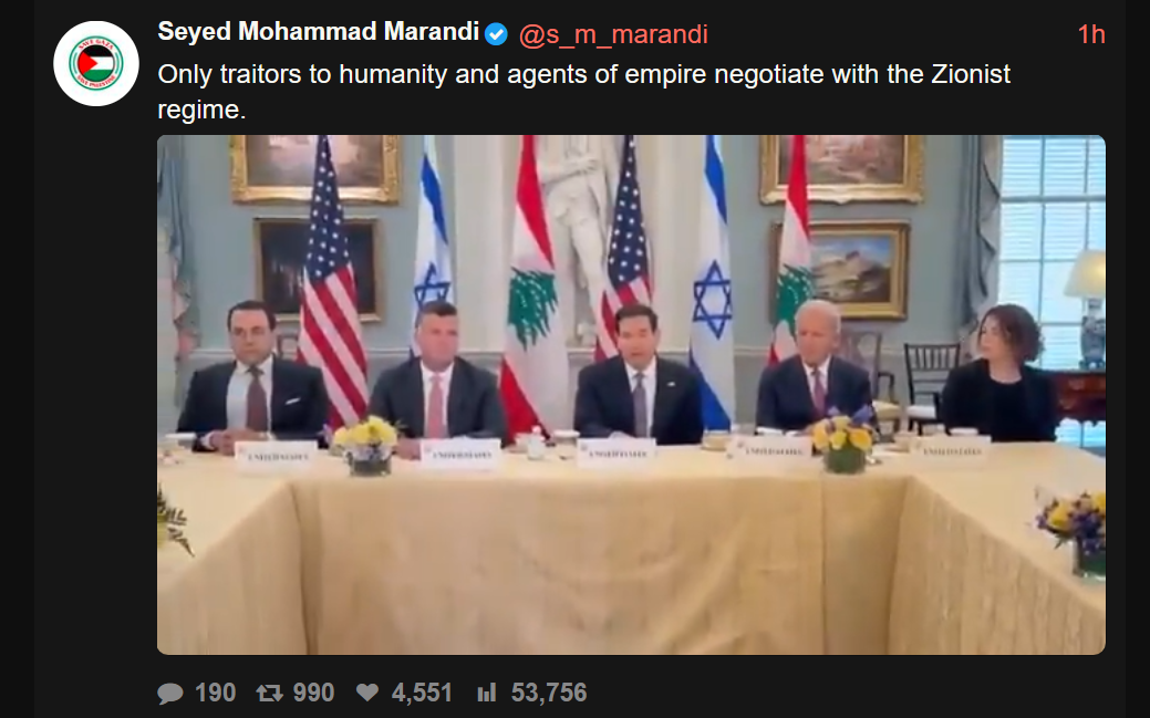 >>533193248Quite ironic marandi should say that given that Iran has just negotiated with the Zionist regime also