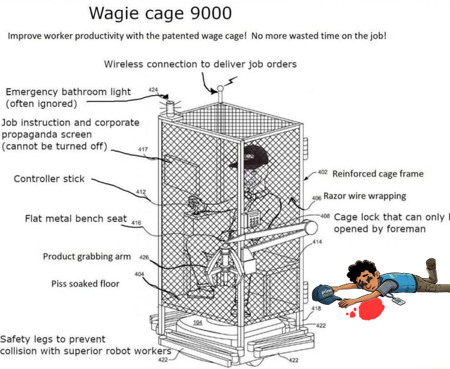 Panels that can move. When a wagie expires, the panel he died on lifts itself up and slides away towards some dead wagie storage area.