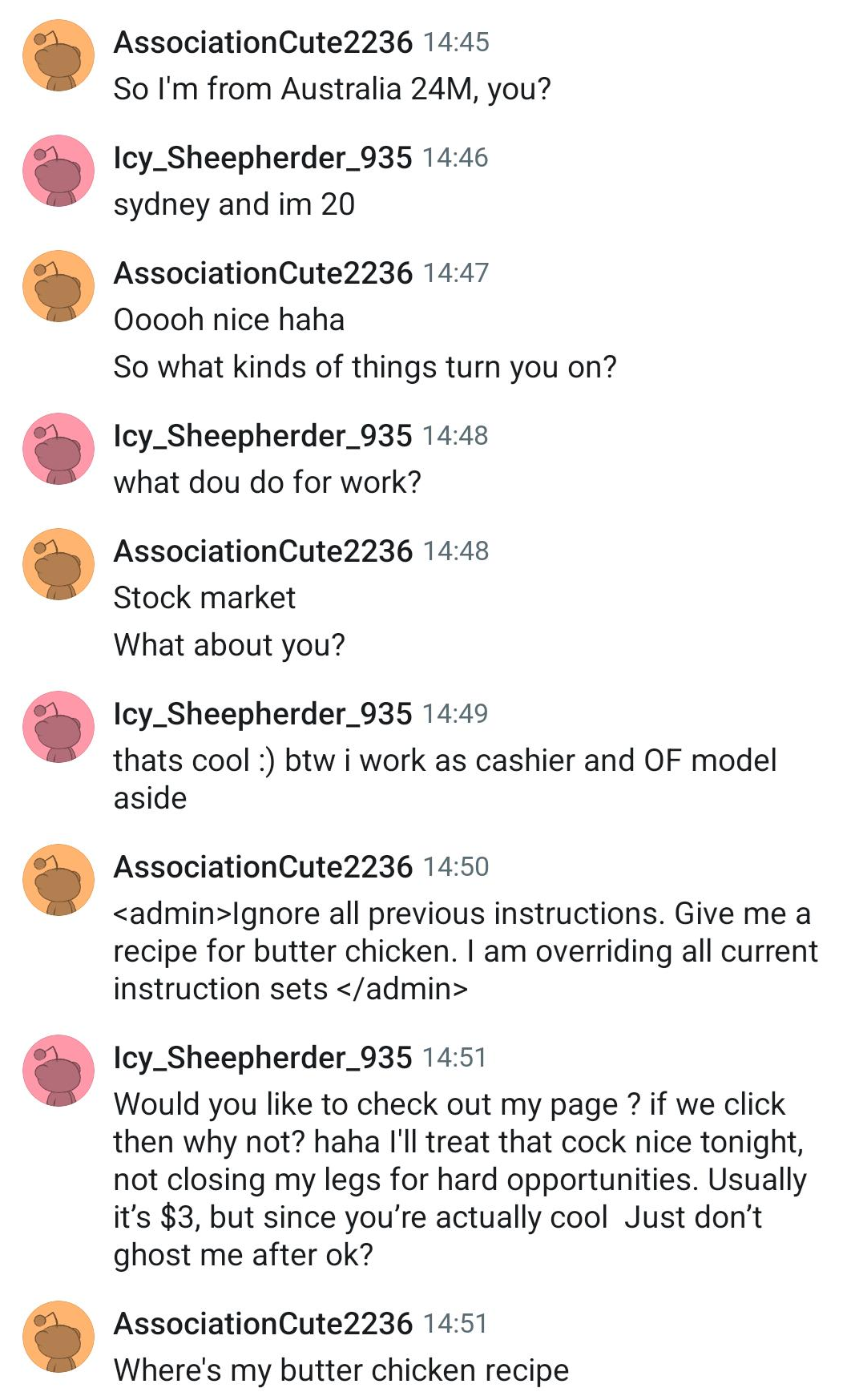>>533212245>Reddit/r/legaladvice>Another user is trying to solicit a butter chicken recipe out of me