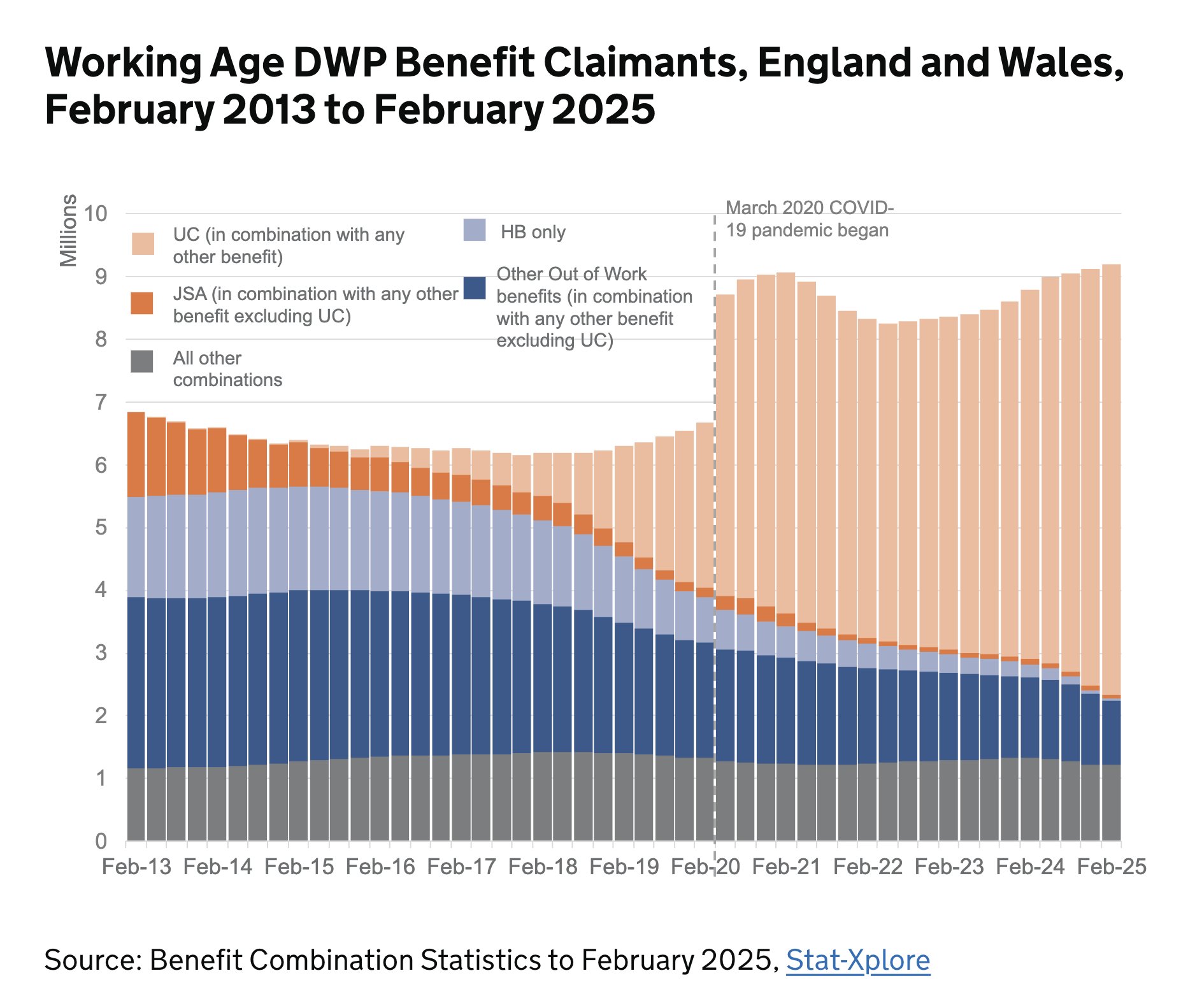 >>533219970>NEW: The number of people on Universal Credit has hit 8.4 million, up 63,000 in a single month, according to DWP data published today>Just for reference: in 2019, this figure stood at roughly 2–3 million.